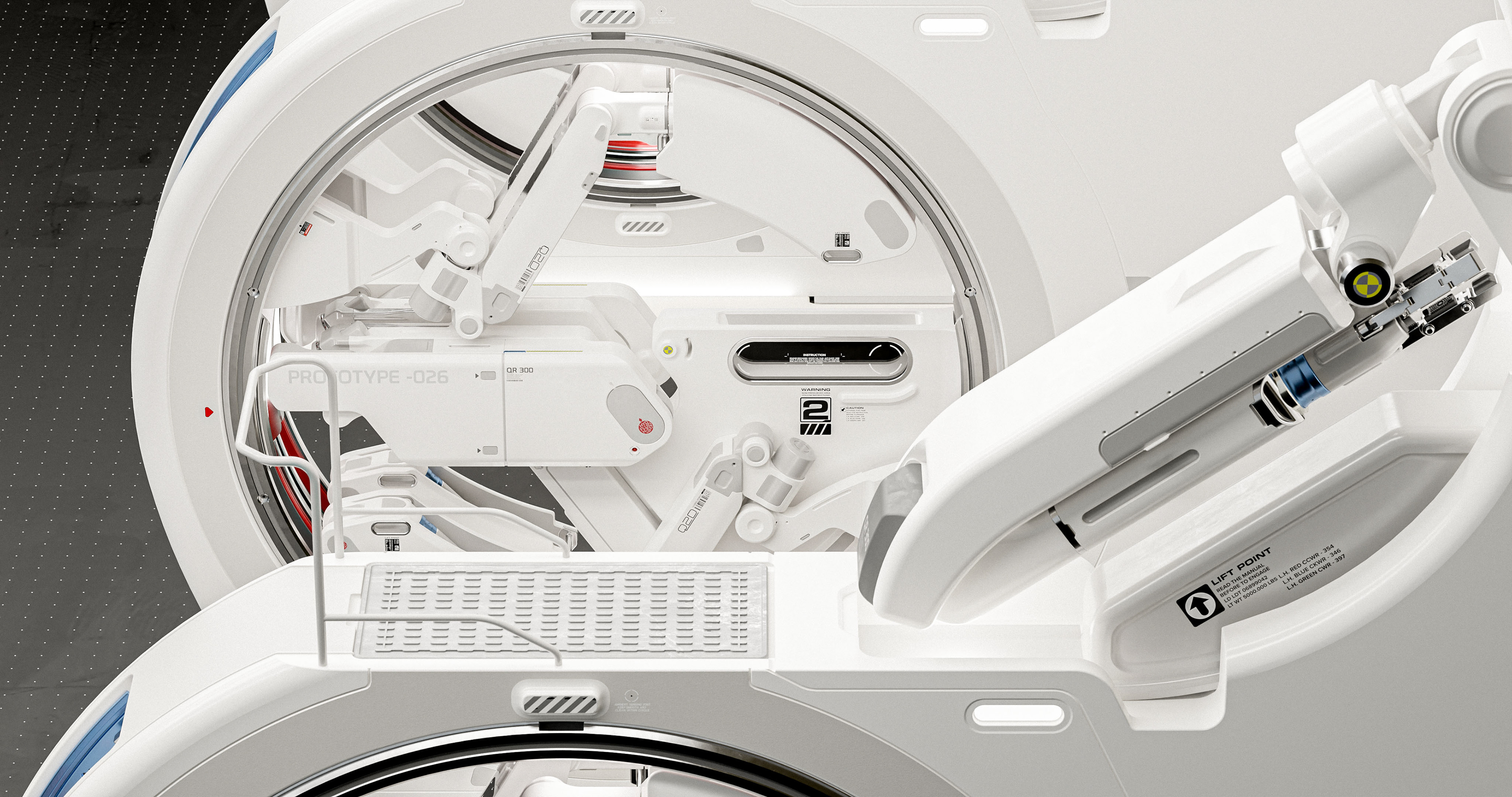 The drop bay station, originally designed by Fausto de Martini, retains the core shapes and forms of his initial concept. My contributions involved re-evaluating the robotic arm design to ensure that all arms have functional movement ranges without any dead spots. Additionally, I refined the color scheme and graphic layout of the station to enhance its practicality and overall appearance.