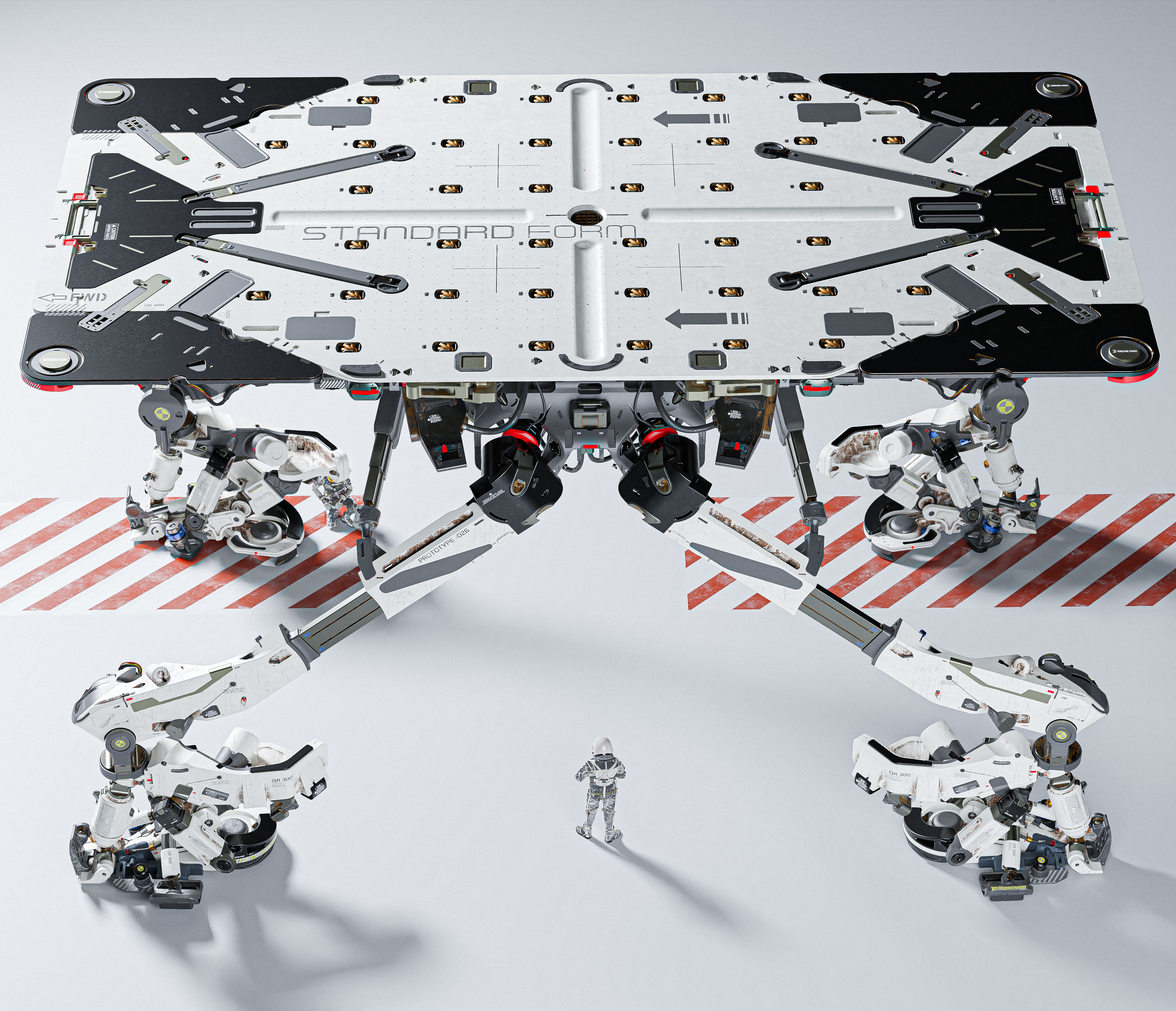 Atlas is a robot that designed to assist exploration team to quickly establish a flat working plane in complex terrain. locking mechanism on the side of the robots can allow multiple robots to assemble a larger platform quickly to establish a foundation of a lab or workshop in uncharted area. It can also serve as cargo units that can carry heavy equipments to high altitude terrian that conventional vehicle have hard time to travel on.